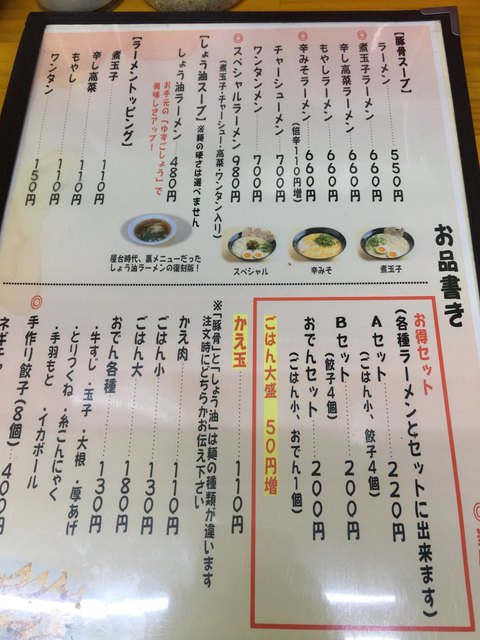 お得セット(ご飯・餃子・おでんなどの組合せ)プラス200円〜220円