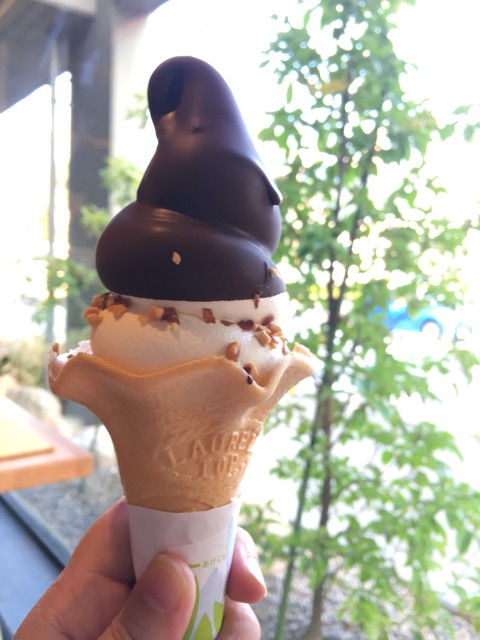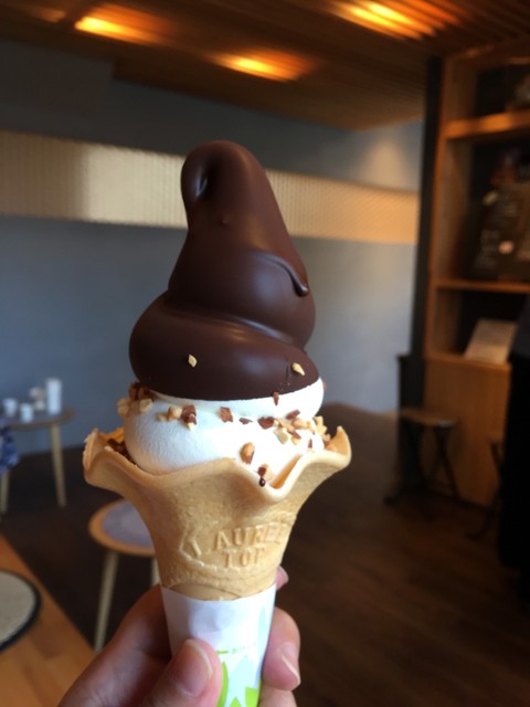 ソフトクリーム本体は熊本は小国町のジャージー牛乳使用、チョコを食べている時は気づきませんでしたが濃くて生乳の香りです。