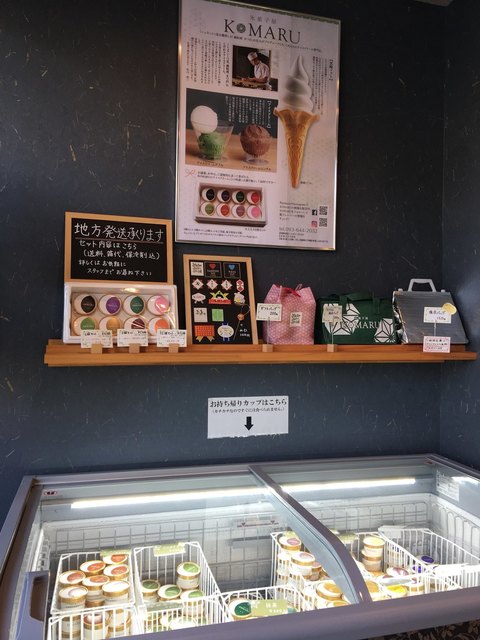 横手の冷凍庫にはテイクアウト用のカップアイス。