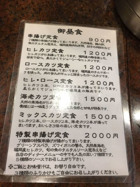 特製串揚げ定食 2000円