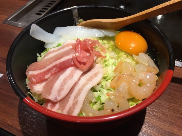 基本の野菜と豚肉にエビ・イカ・ホタテが入ります。
