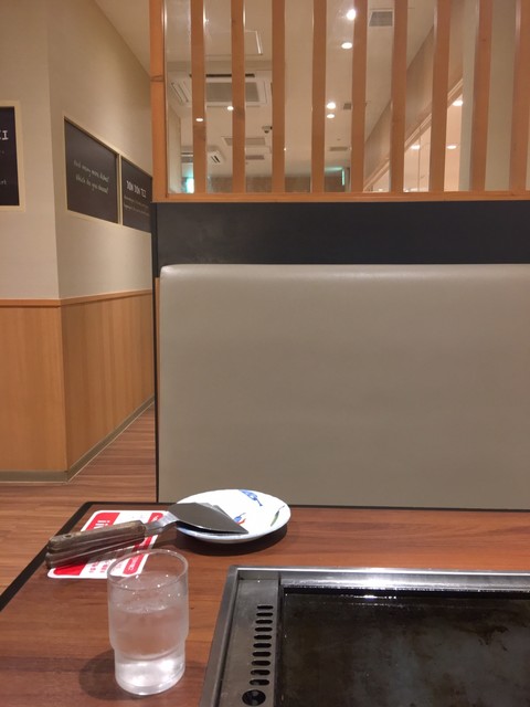全席鉄板付きテーブルでお好み焼きはセルフ焼き、焼きそばなどは厨房で仕上げたものを鉄板に置いてくれます。