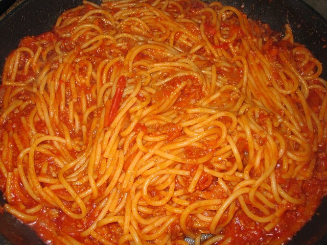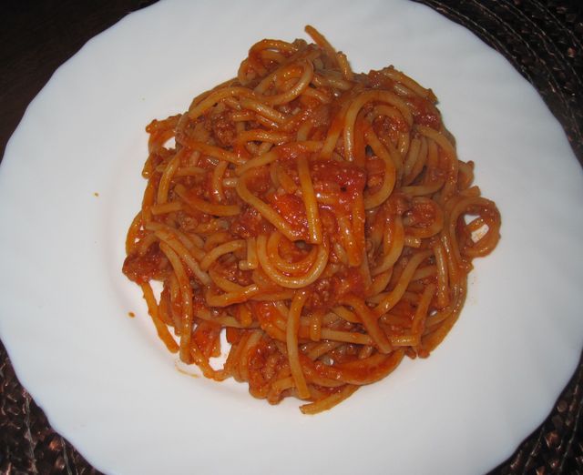 太麺でミートソース (2011/09/04)