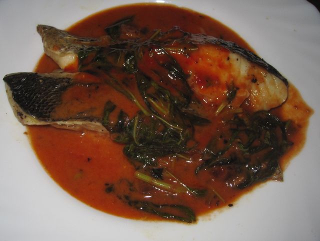 スズキのソテーアンチョビバジルトマト風味