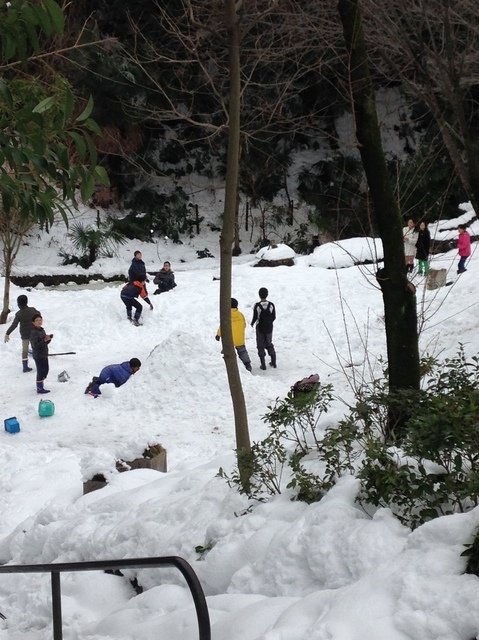 東京とは思えない雪景色。かまくらも作ってました。 (2014/02/15)