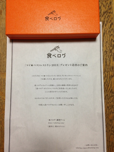 マイベストレストラン2013応募者への景品が届きました。 (2014/03/13)
