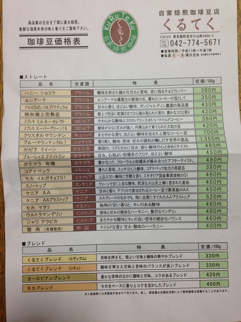 自家焙煎珈琲豆店「くるてく」のレビュー (2014/04/14)