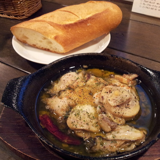 ■牡蠣ときのこのアヒージョ 880円 ~バゲット 200円