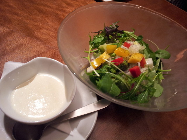 サラダのドレッシングも甘酸っぱく好みの味です。