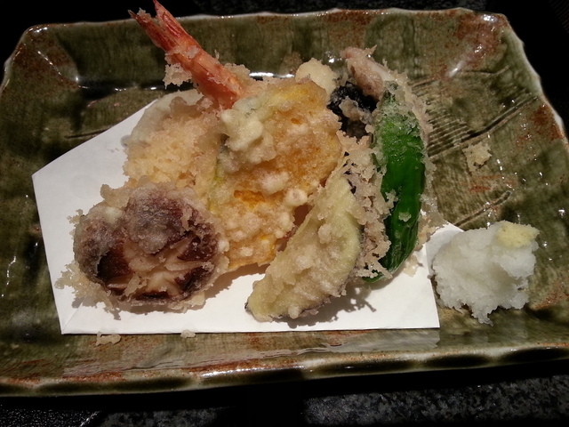 海老、カボチャ、茄子、ししとう、しいたけなど。