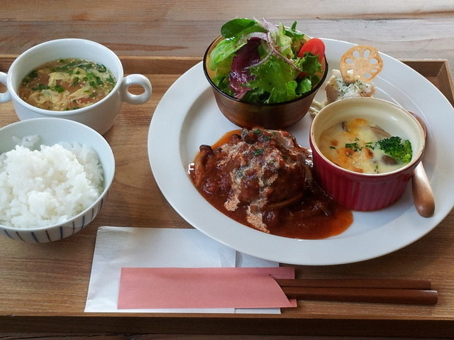 ハンバーグも分厚くてデミグラスソースがまた美味しい。