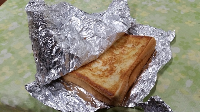⑦アルミホイルを開けると、耳の付いたままの食パン