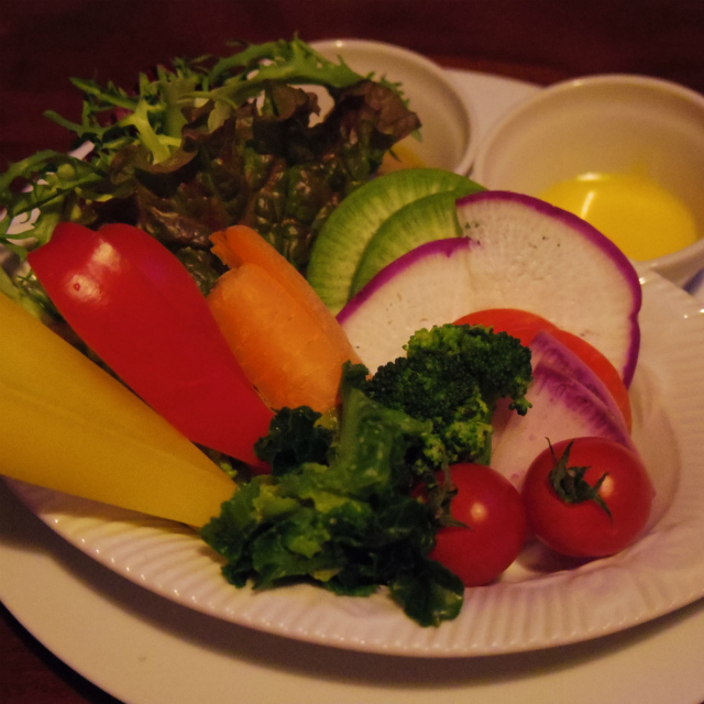 これで10種かな。素材の味を十分に堪能できました。自家製のディップとドレッシングみたいなのが