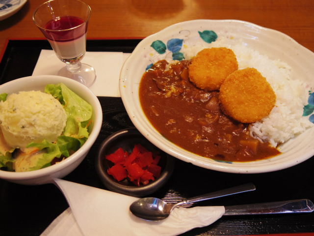 ビールカレーですが、小さめのクリームコロッケが2つ乗っていました。