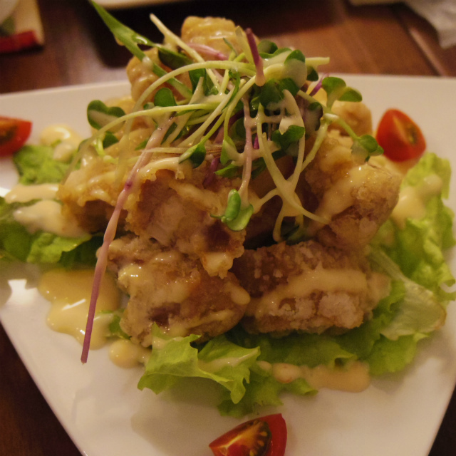 唐揚げはこのお店にしては普通といえば結構普通っぽいですが、マヨネーズソースがいい味出していますね。