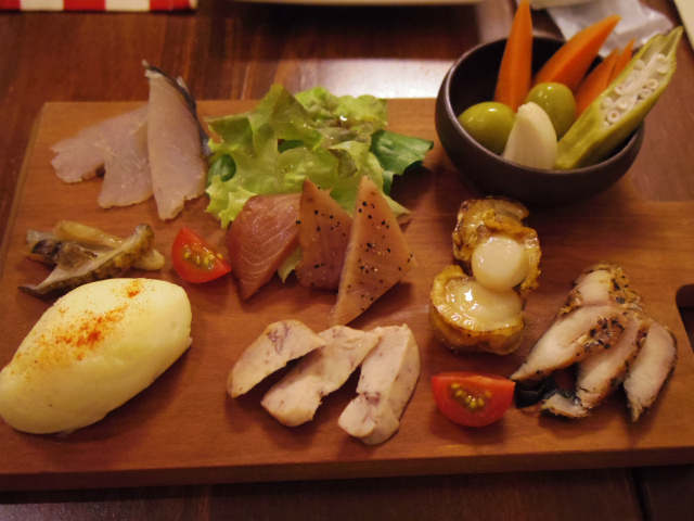 まずは何と言ってもここの名物である「燻製盛り合わせ グランデ」(1850円)と