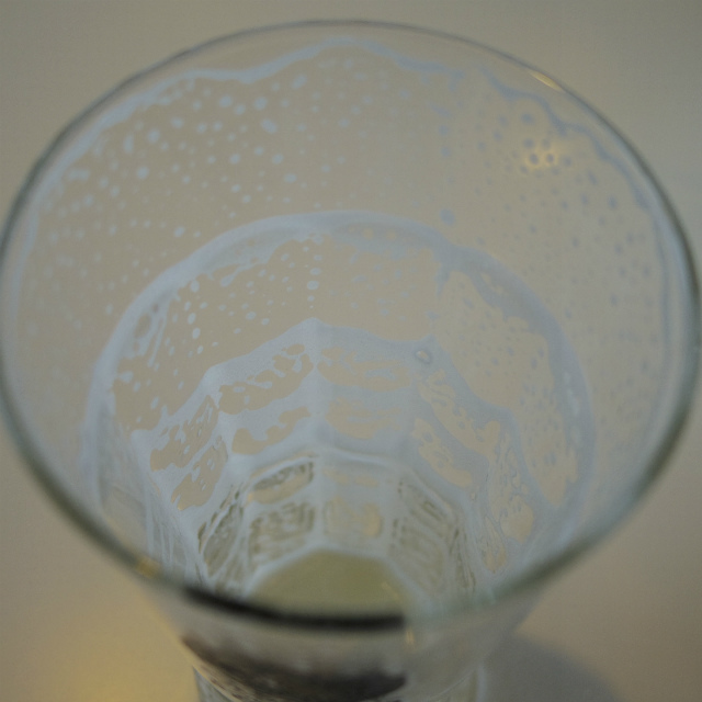 飲むたびに泡の跡がグラスに残るレーシングがきっちりできていました。(3枚目の写真参照)