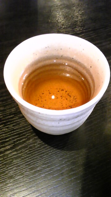 混んでいたので仕切りなしのお茶のみのコーナーに座らせていただいて15分ほど待ちました。