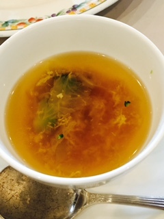 スープは季節の白菜が入ったおすましに近い味のものでした。外は雪がちらついていたので温まりました。