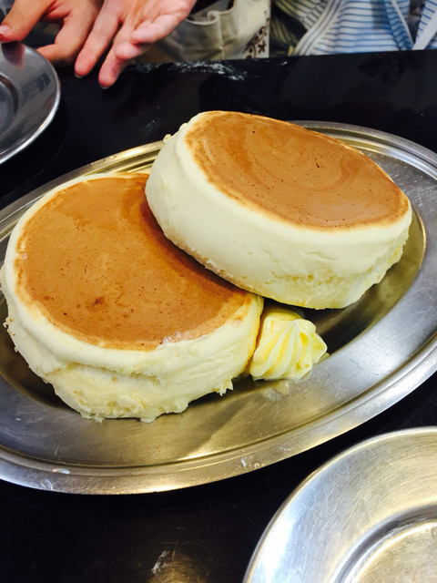 ホットケーキは他のレビュアーさんも書かれてる通りものすごい厚みです!添えてあるマーガリンと使い放題のメープルシロップをたっぷりかけて食べるとおいし~い!