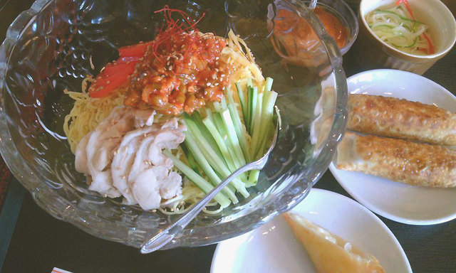 ランチ「冷やし坦々麺」セット(小鉢2皿、餃子2個付き)♪