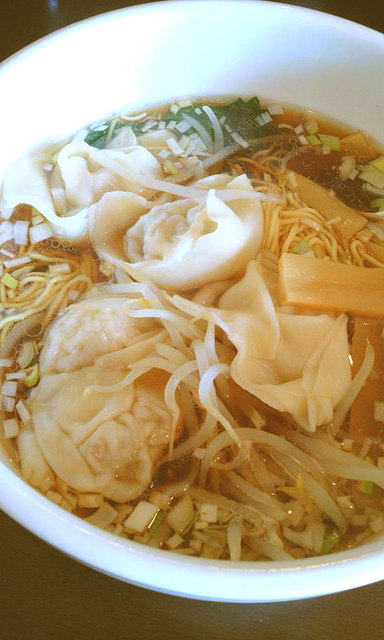 「ワンタンメンセット」(小鉢2皿、餃子2個付き)♪
