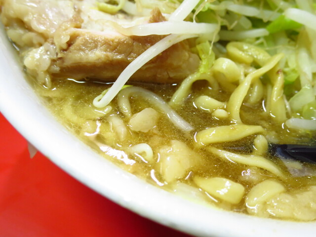 さらに、店主は野猿二郎出身ということから多摩系らしく背脂がゴロゴロ浮いているのが特徴である。
