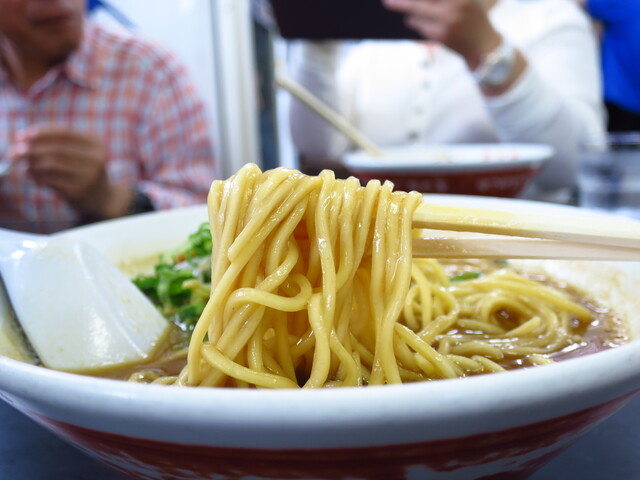 また、麺は徳島ラーメン王道のやや柔らかめの中細麺で、普通にスープと絡んでくる。
