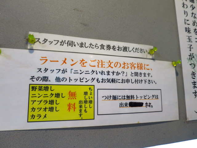 店頭にはニンニク入れますか?のキャッチコピーが入ったポスターが存在し、
