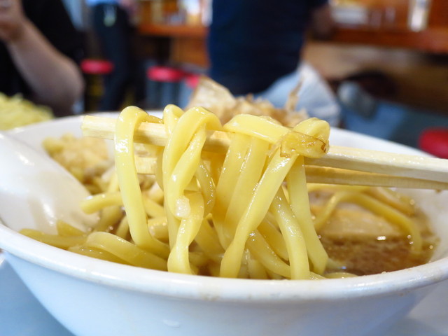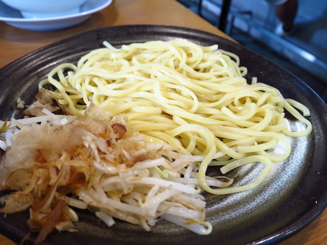 本家とは全く異なるツルツル麺で、麺量も少ない。