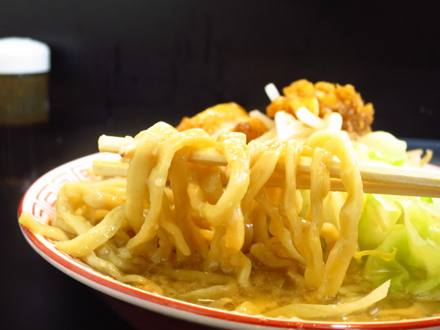 麺はそこまで太くないが、麺自体のゴワゴワ感が凄く、麺自体の弱さはないものの、