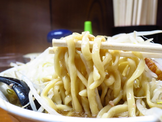 また、麺の量が明らかに多くなっており、「これ350gくらいあるんでは?」という二郎トップクラスボリュームであった。