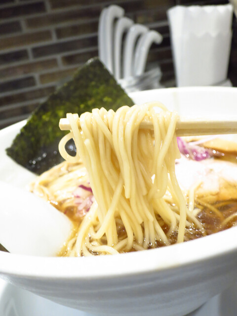 スープは今風の鷄醤油スープ+貝出汁という方程式で、これら3要素がバランス良く主張して、グイグイ飲ませる。