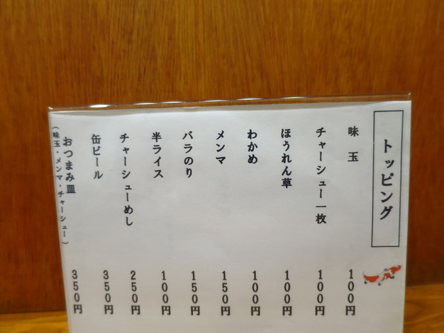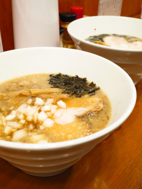 店主は荻窪の「二葉」出身という経歴を持つため、背脂煮干が看板メニューとなっており、