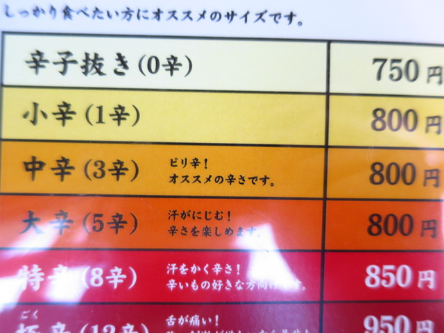 と半狂乱状態だったが、店のメニュー表にはしっかり「中辛(3辛)」のところには