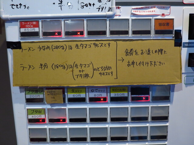 良い意味で全く作り込まれてない店内、良い意味でスカスカの券売機、そして呪文の説明など