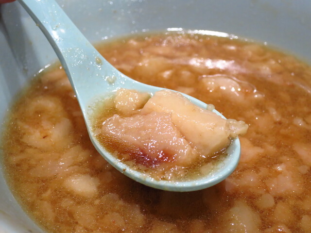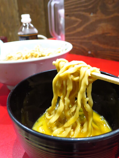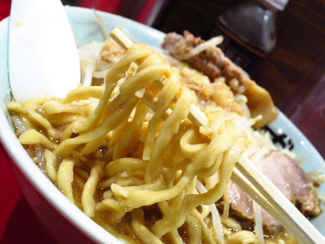 麺は良い意味で不揃いチックなもので、小麦感とモチモチ感も兼ね備え、圧倒的な戦闘力麺。
