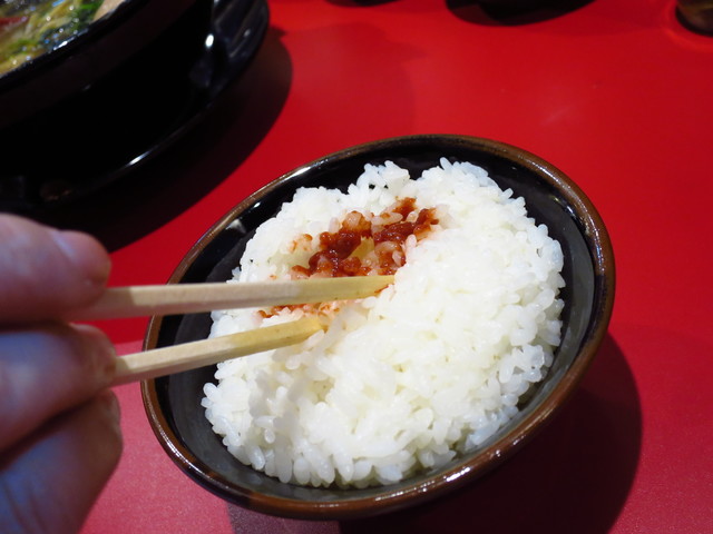 それから店主がオススメとする豆板醤かき混ぜご飯に関しては