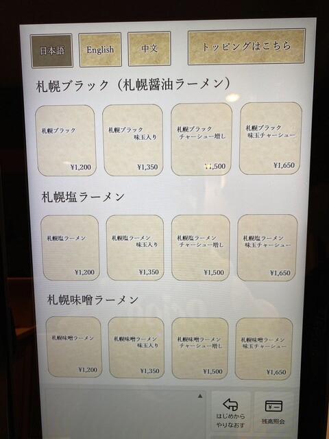 ・札幌ブラック ・札幌塩ラーメン・札幌味噌ラーメン