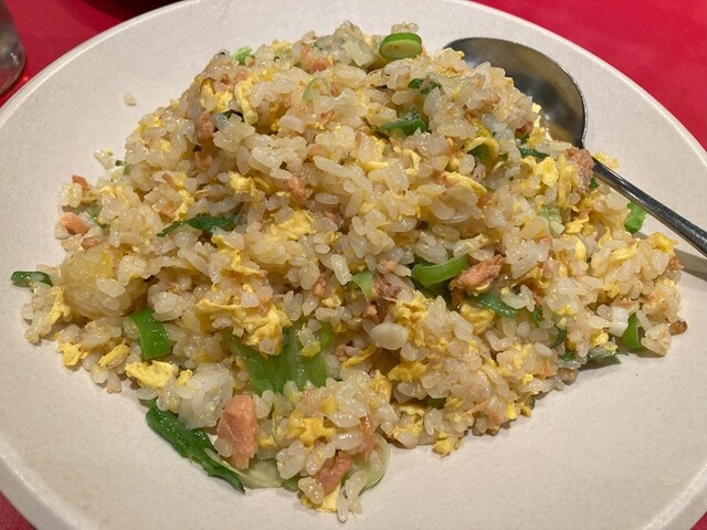 飲み会だから、つまみのつもりで頼んだチャーハンが、なんと昼と同様に大盛。