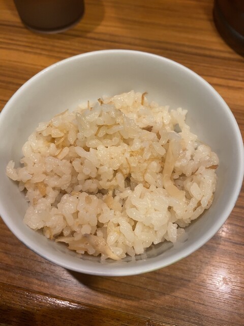 着席してから、麺の大盛りか炊き込みご飯がサービスなのでどちらにしますかとのこと。今回は炊き込みご飯にしました。嬉しいサービスです。