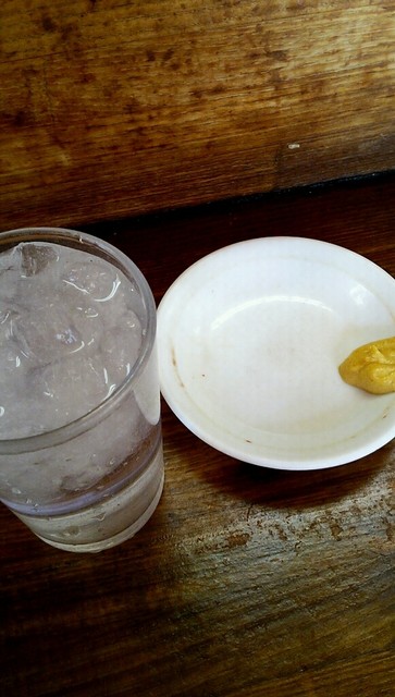 直ぐに辛子付小皿と冷水が供された。
