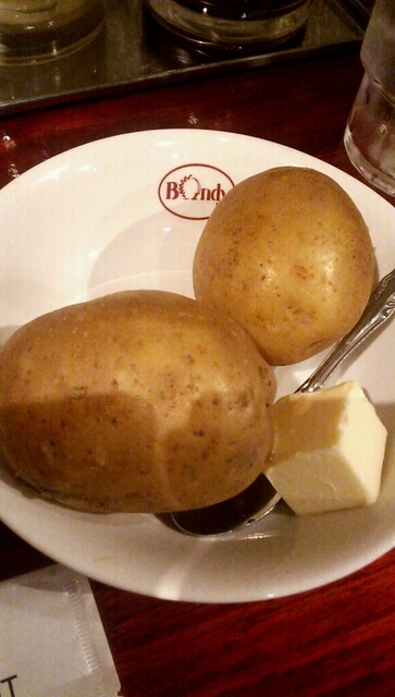 最初におしぼり、そしてジャガイモとバターが供されました。