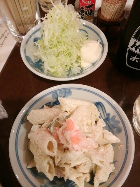 煮込み、マカロニサラダ、キャベツをツマミに頂きました。