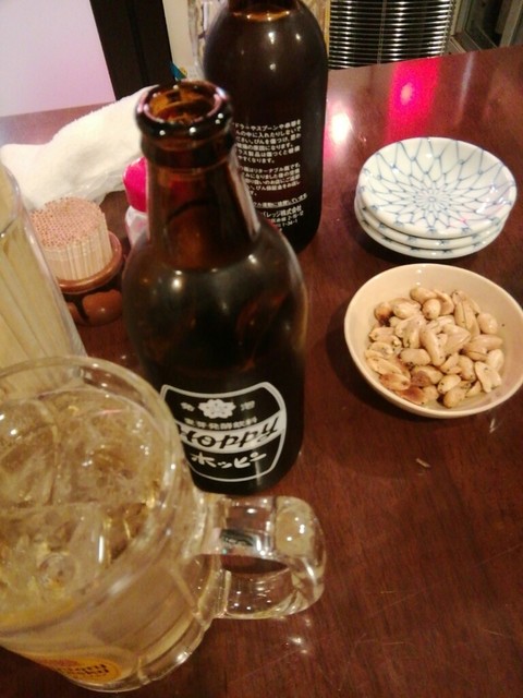ホッピーをボトルで注文、もちろん金宮です。