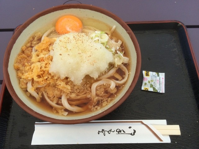 ぶっかけは、大根おろし、カイワレ、ネギとシンプルな組み合わせ。麺は、どちらかと言えば細いものだったが、コシがしっかりして噛むと小麦の味がする美味しいものだった。これに、薄口醤油を使い、出汁の味もしっかりするかけ汁がかかり、美味しさ倍増。このあたりは、スタンドうどんとは別格である。かけ汁が尖っていないところなどは、低価格で食べることができる「こくわがた」や「おにやんま」より好みである。