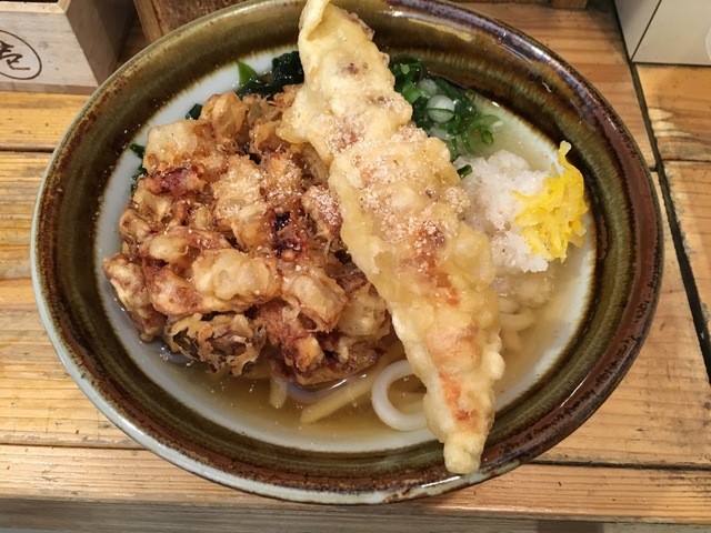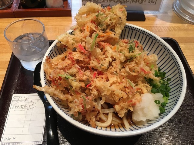 また、ちくわ天が無料で付いたのでいらなかったかなと思ったかき揚げが大変美味しかった。カラッと揚がっているのは当然として、ぶつ切りのタコ(イカだったかも。最初は竹輪片だと思ったが)がコリッとした食感を出している。