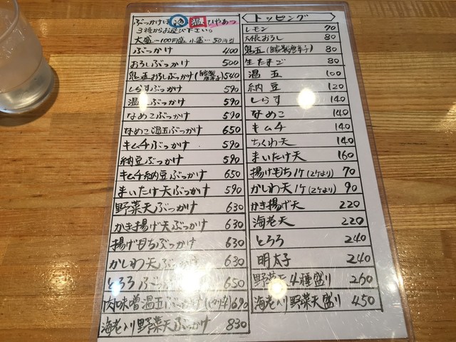 西日暮里にある「ぶっかけや」で讃岐うどんを食べた。JR西日暮里駅からは少し離れていて、日暮里舎人ライナーの駅の下にあるといえばよいか。注文したのは、かき揚げ天ぶっかけ630円で、かけうどんに様々なトッピングが用意されている。