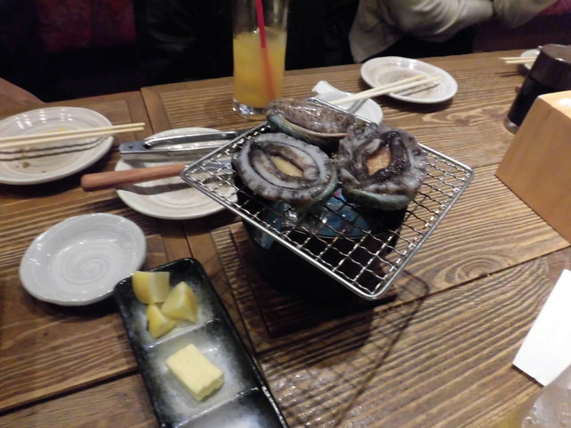出色はあわび399円。それも結構な大きさ。コンロの上で踊るアワビは