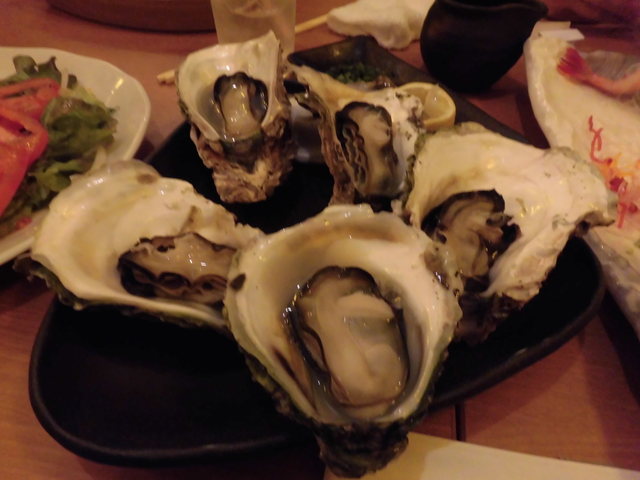 ②は缶で10分蒸した生牡蠣で店長が素手で開けてくれました。ポン酢が合いますね~
